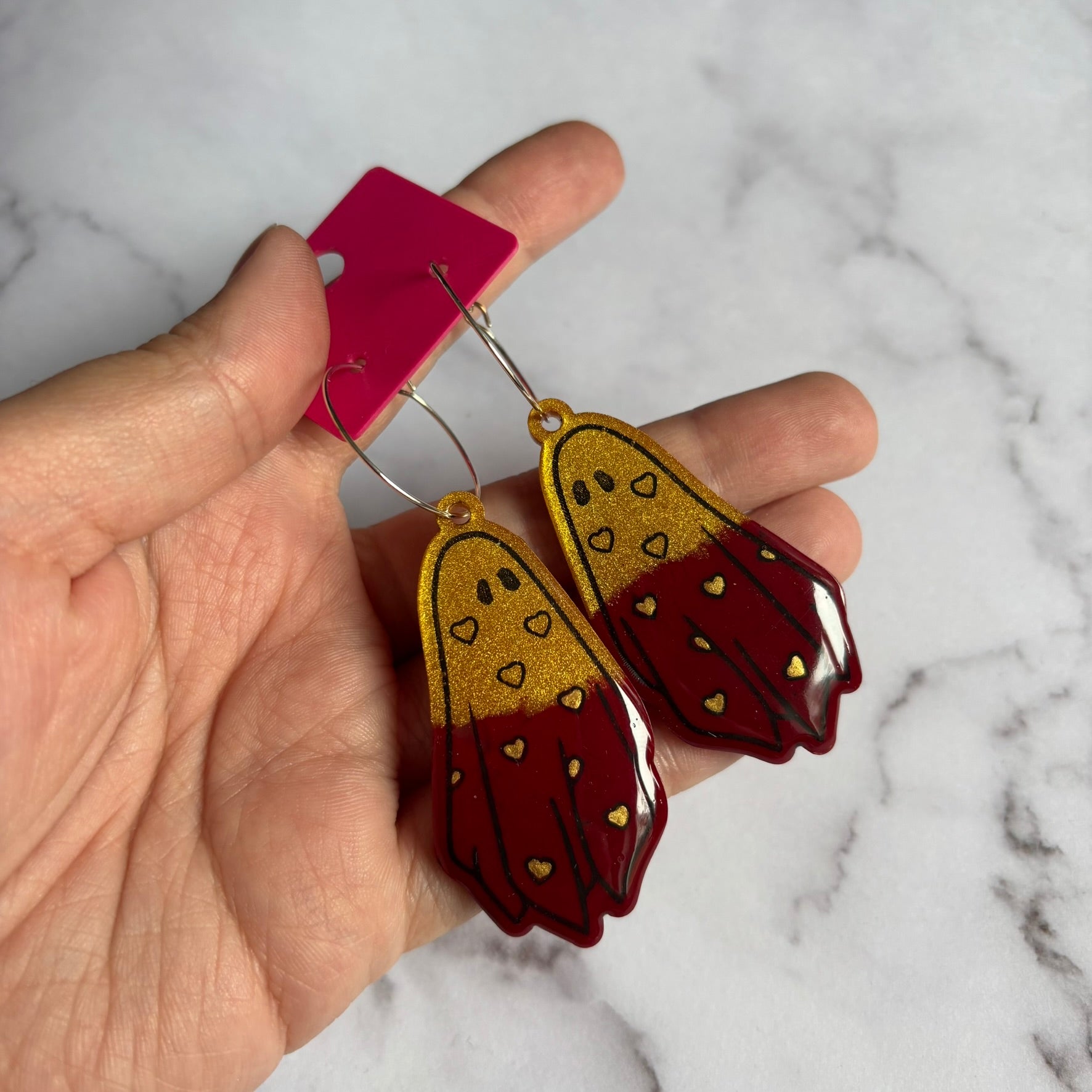 Gold/Burgundy Heart Ghostie Earrings